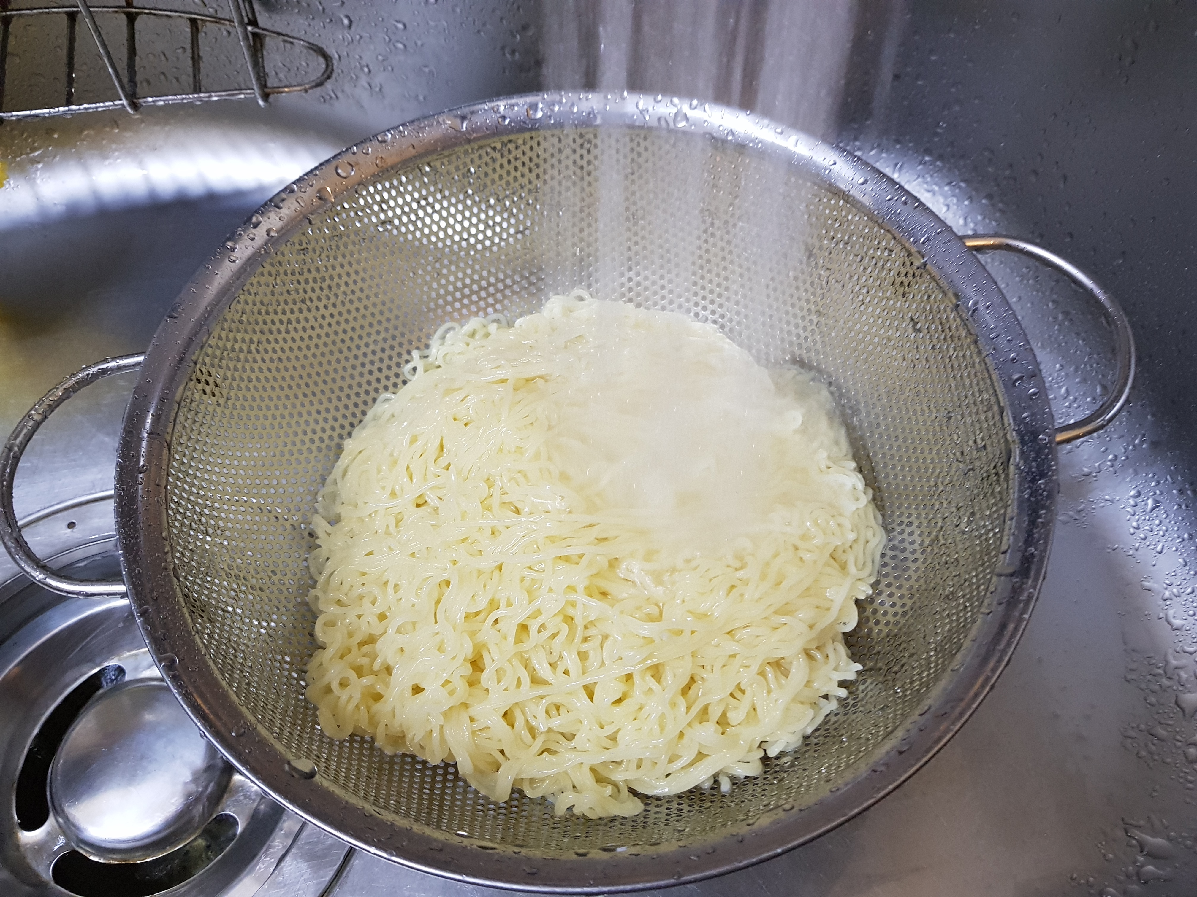 면은 이렇게 채반에 걸러서 시원한물로 행구고