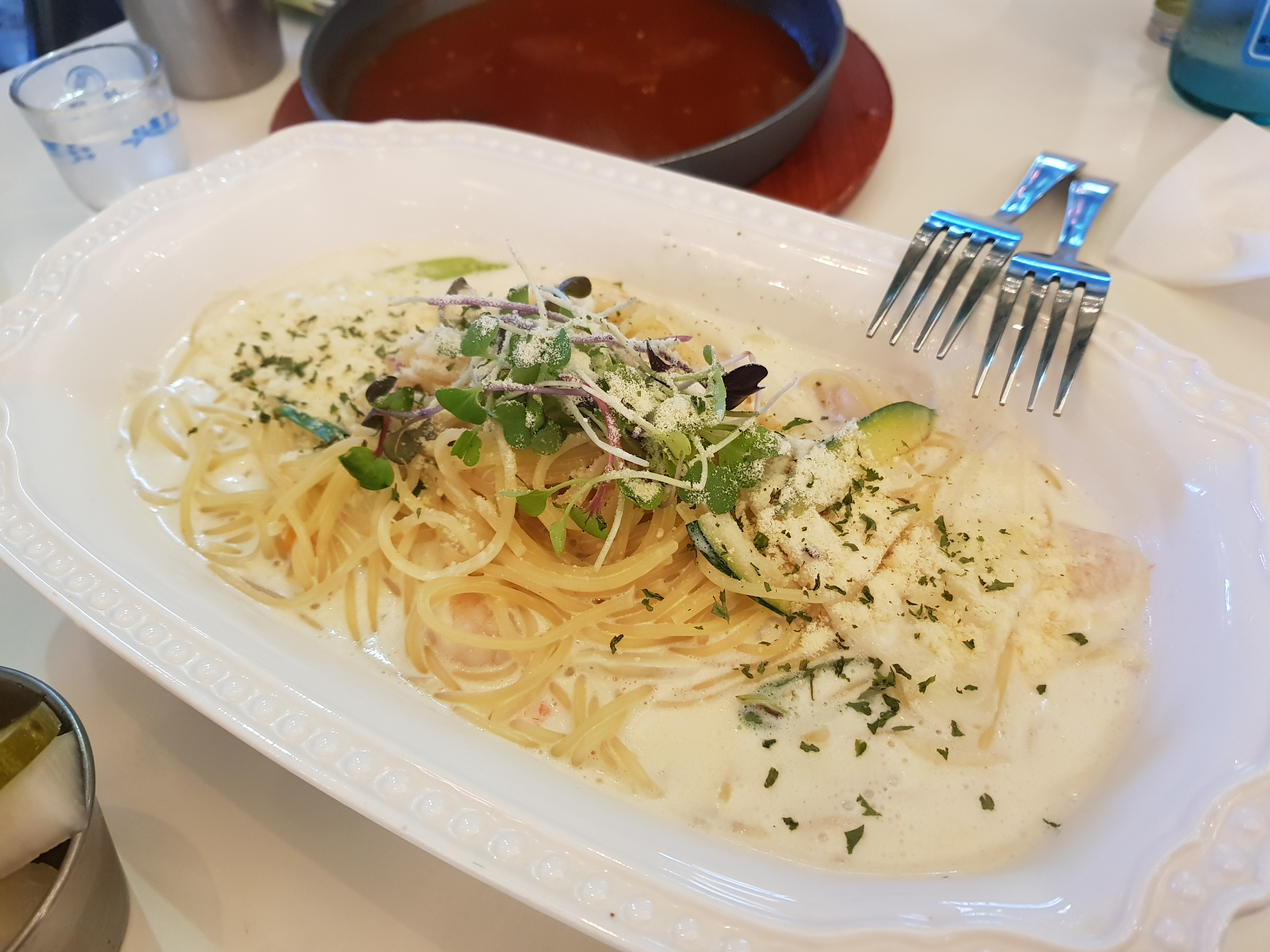 마지막으로 나온 새우크림 스파게티입니다~