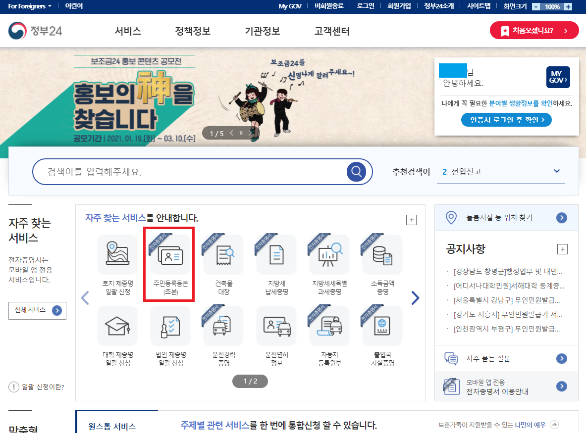 주민등록등본 인터넷 발급방법 순식간에 따라하기~ (주민등록초본 포함)