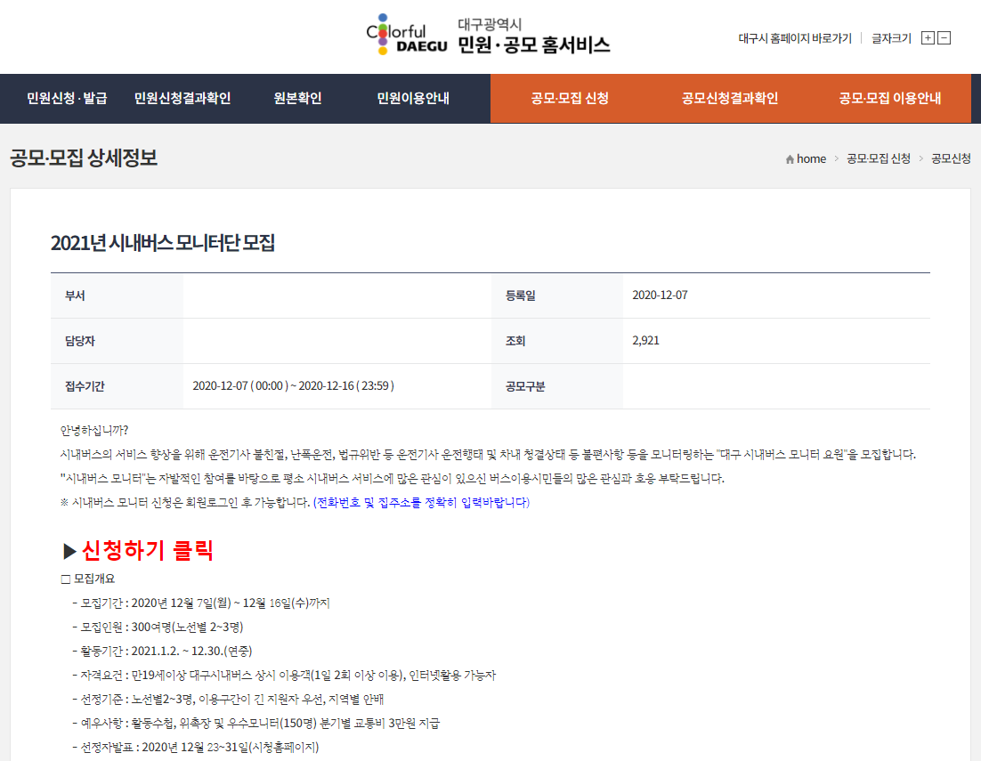 2021년 대구 시내버스 모니터단 신청방법 및 선정후기~