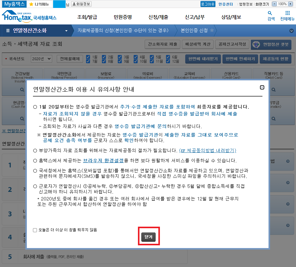 연말정산간소화 이용시 유의사항 안내