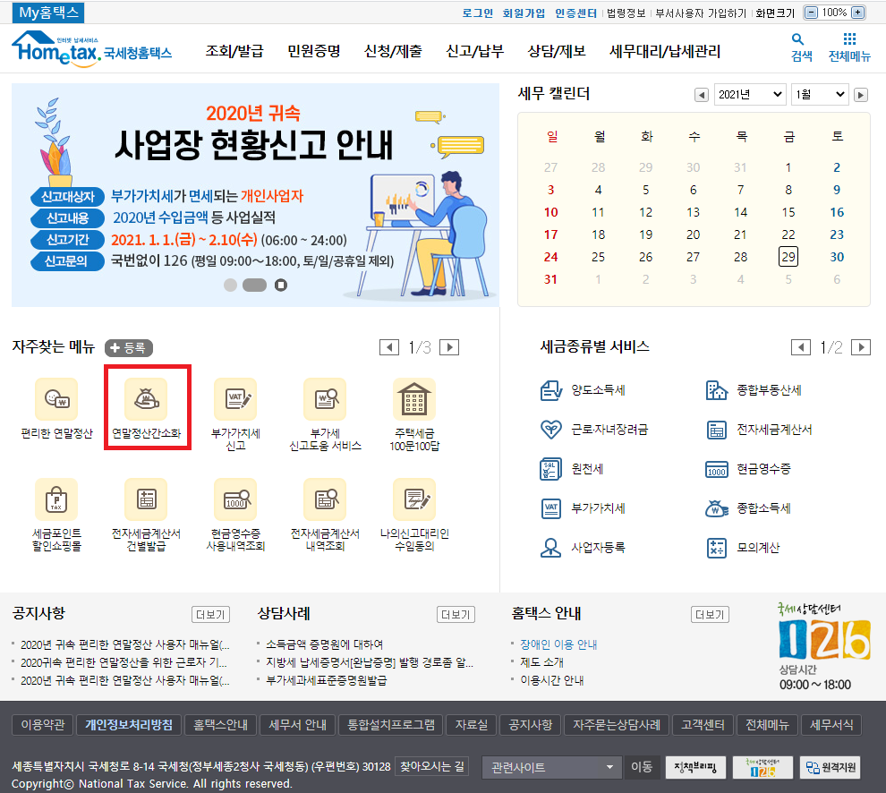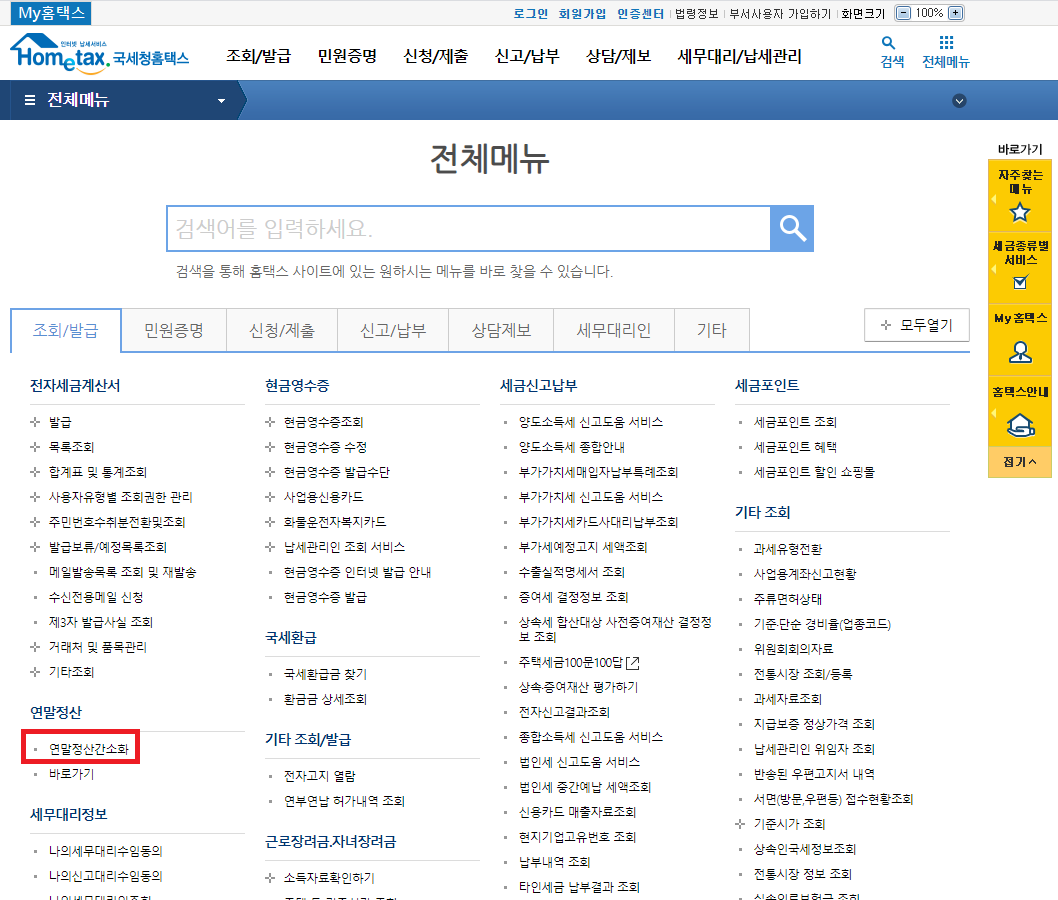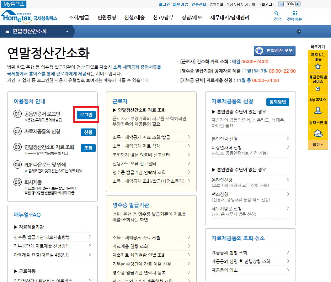 연말정산간소화 서비스 페이지로 넘어가는 방법은