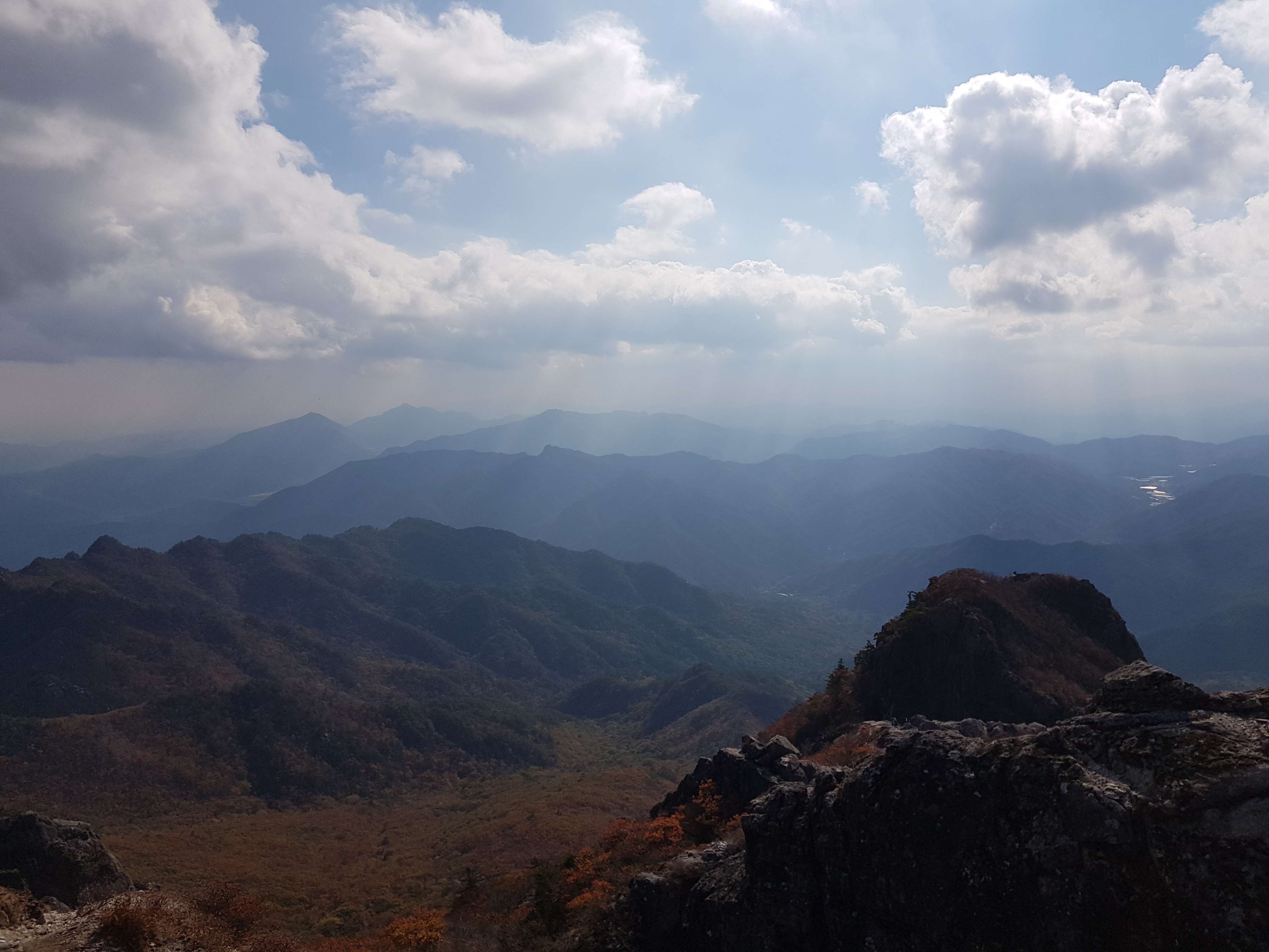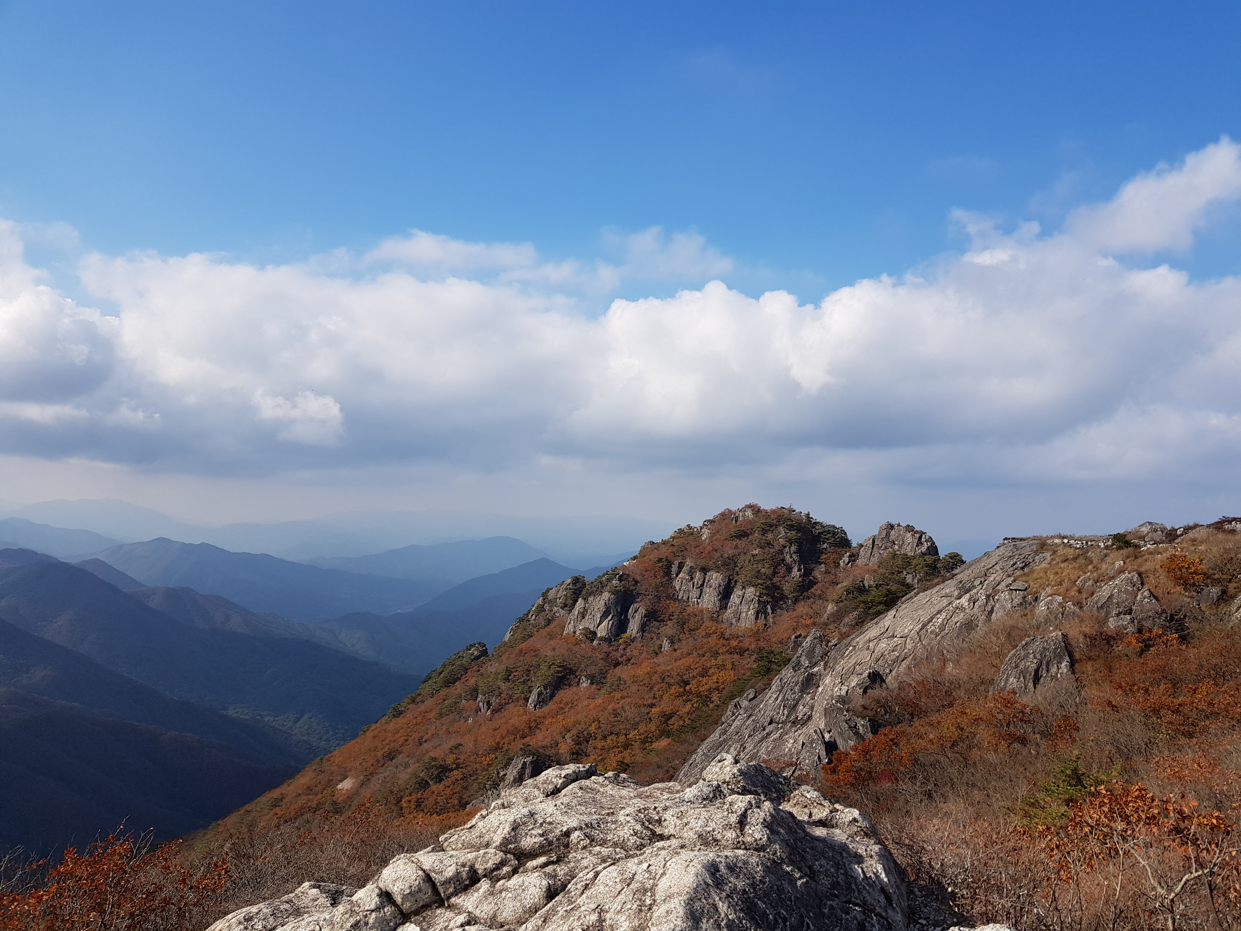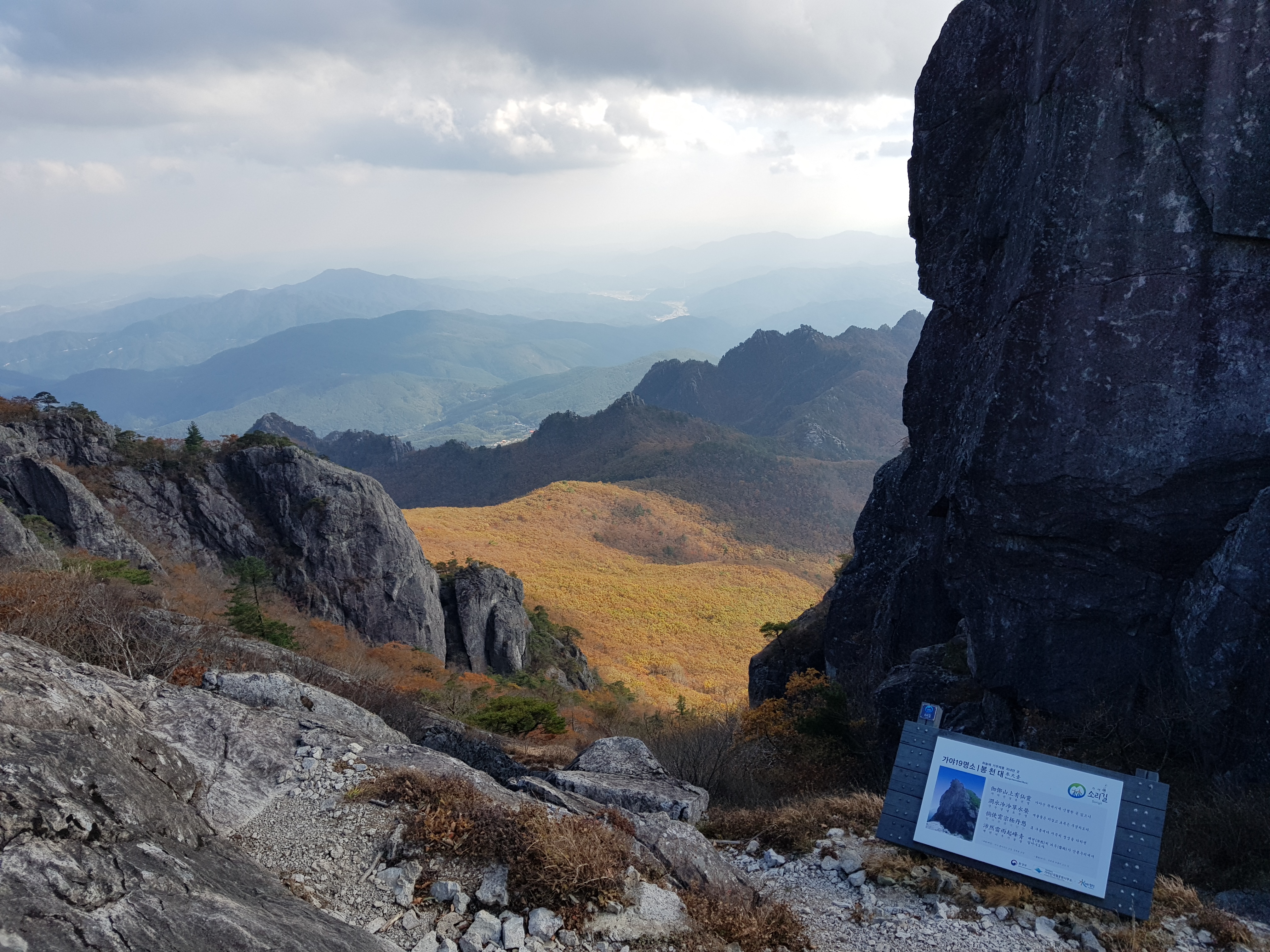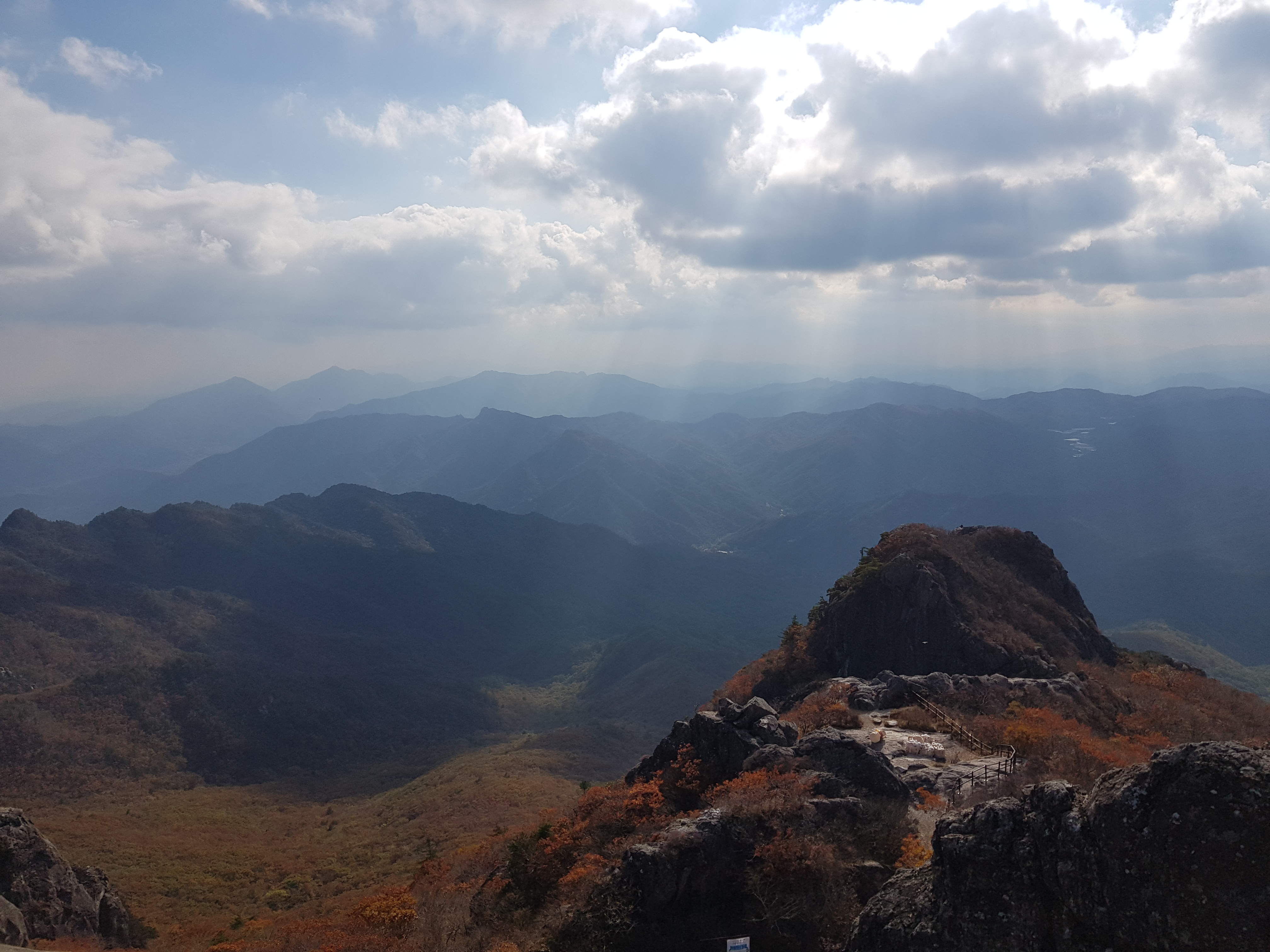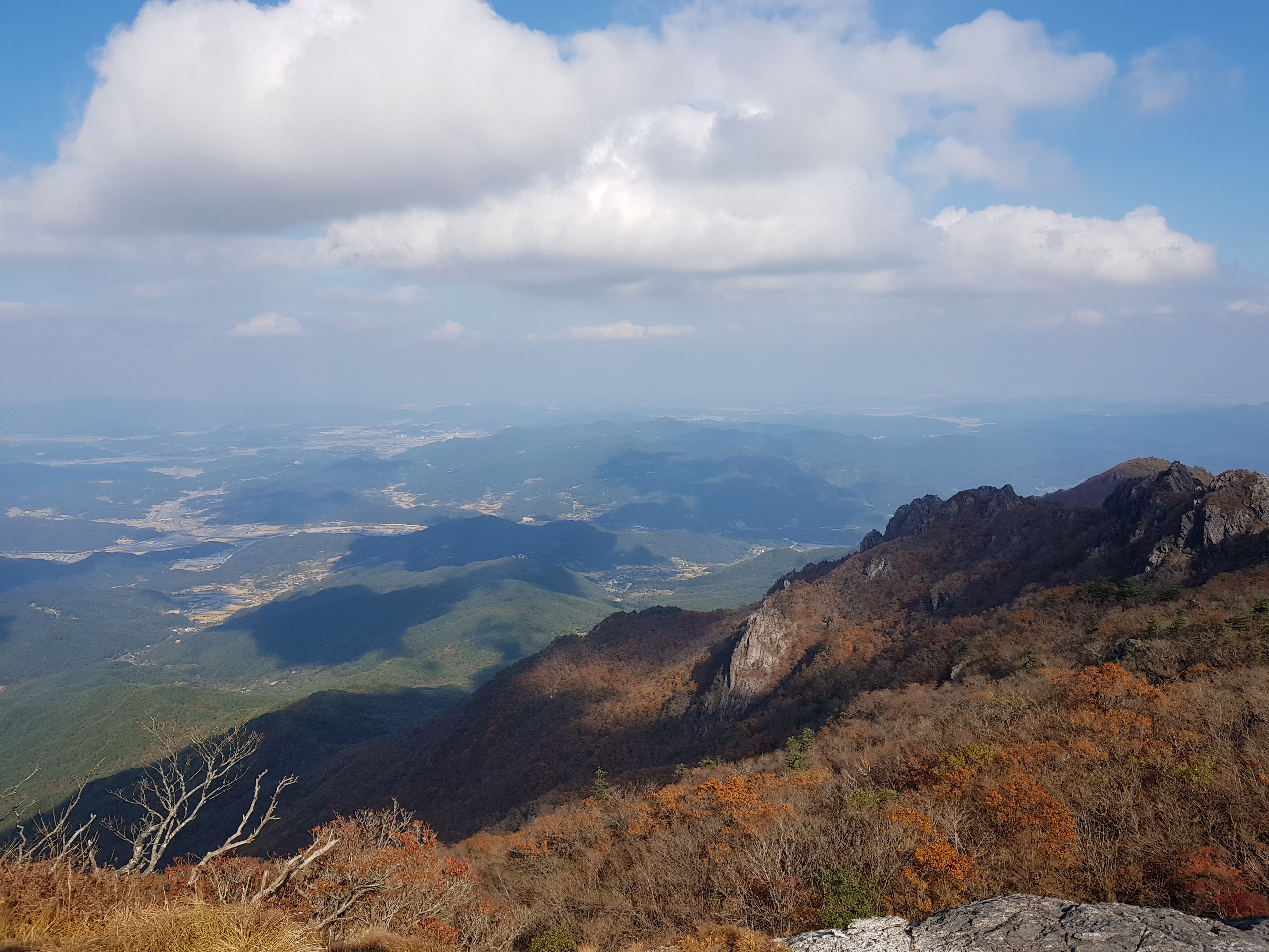 멀리에 있는 낮은 산들은 아직 단풍이 들기전이네요~