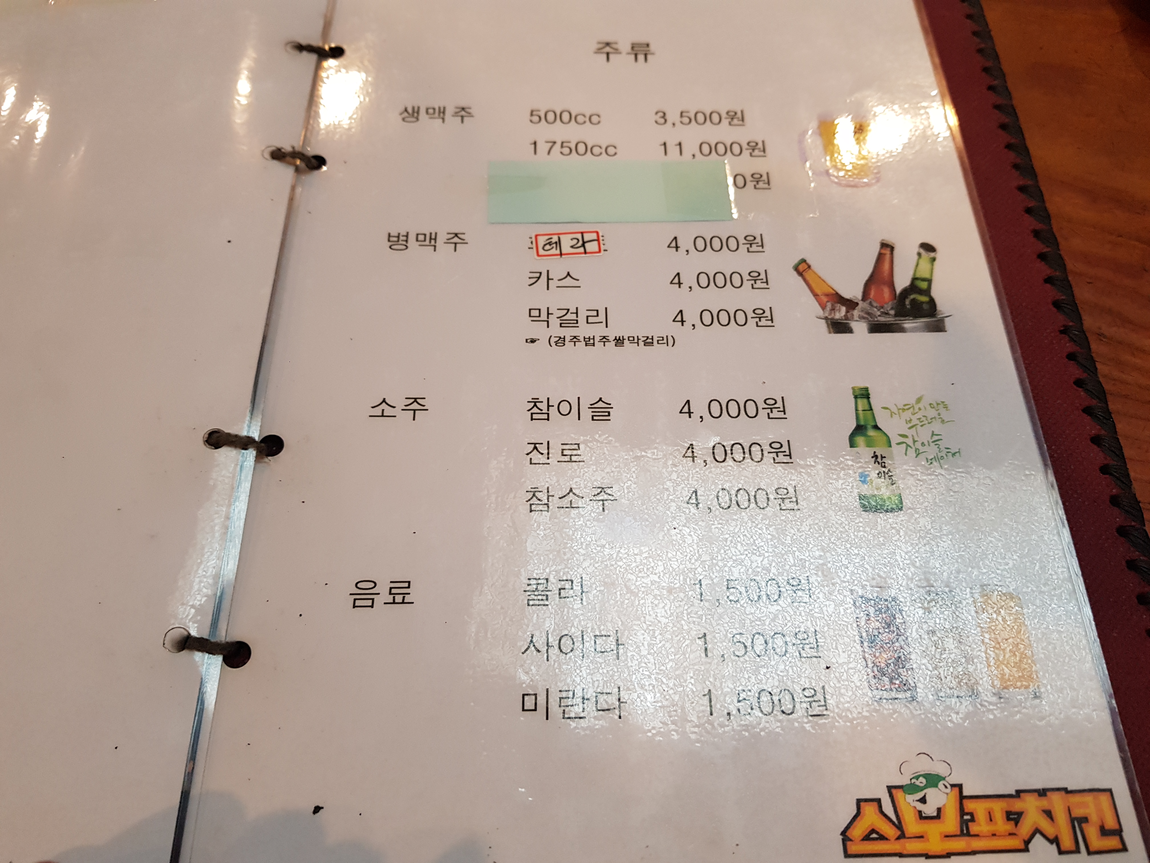 자 마지막으로 주류메뉴입니다~