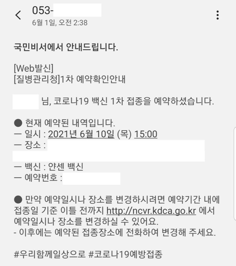 COVID-19 얀센백신 예약 및 접종후기