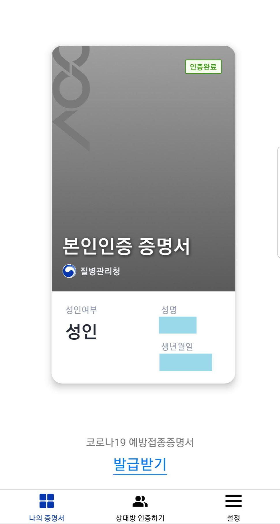 코로나 19 예방접종증명서 발급받기를