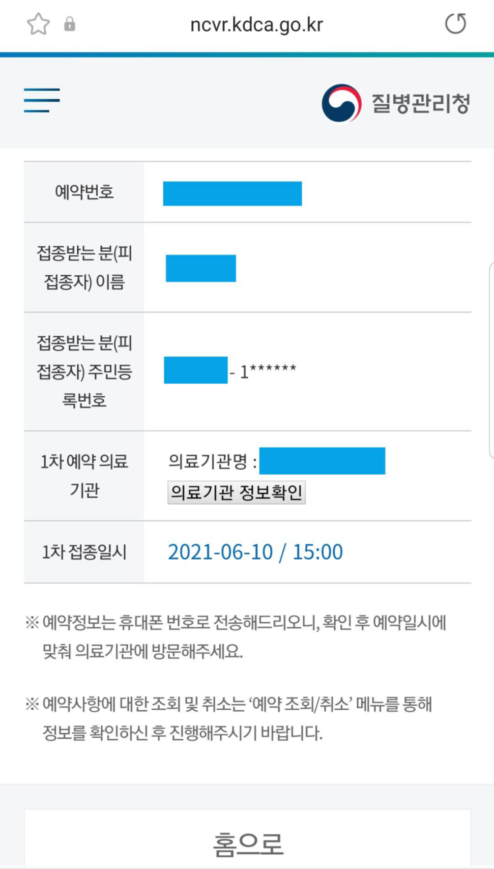 접종가능 통보를 받고