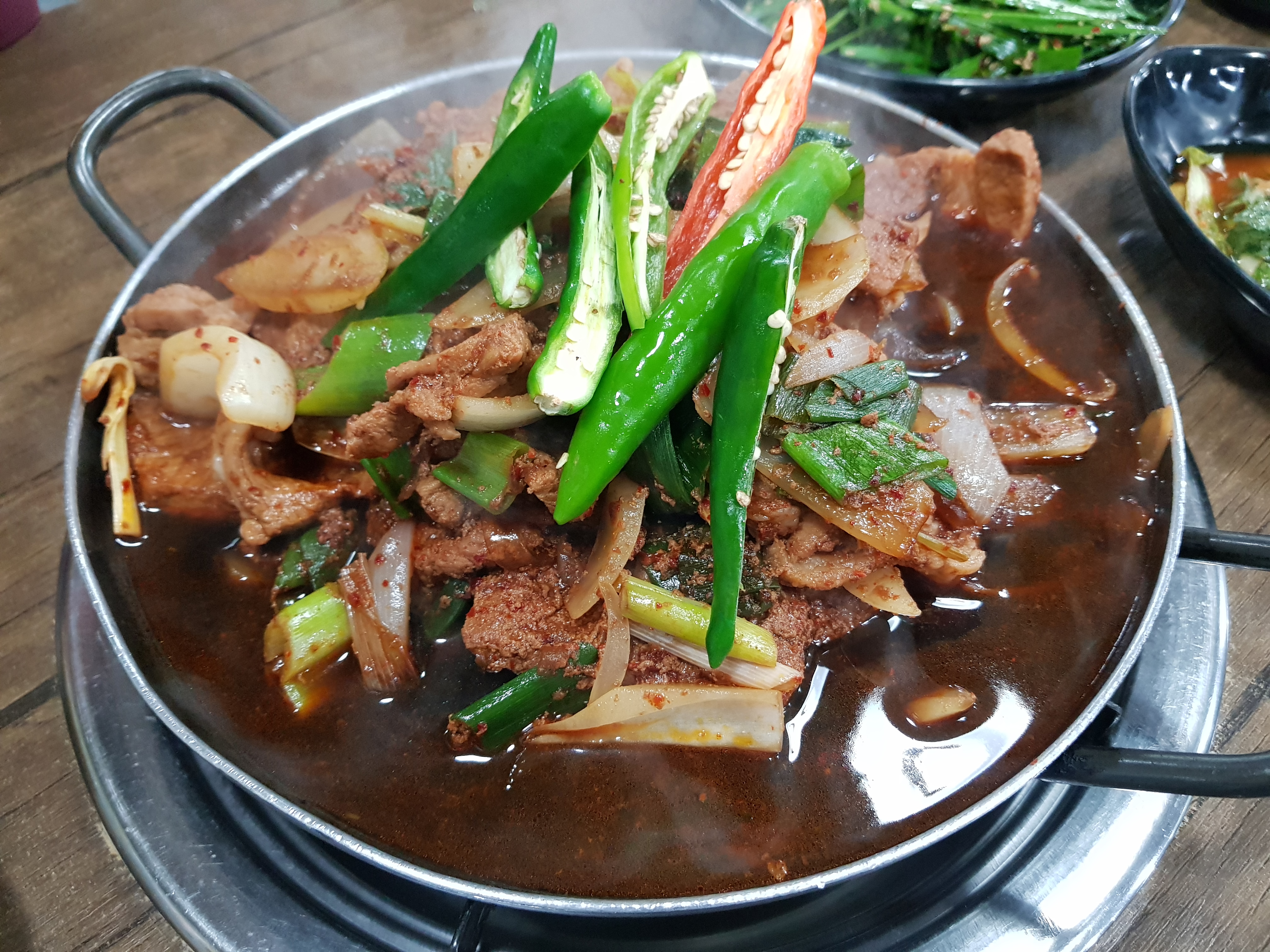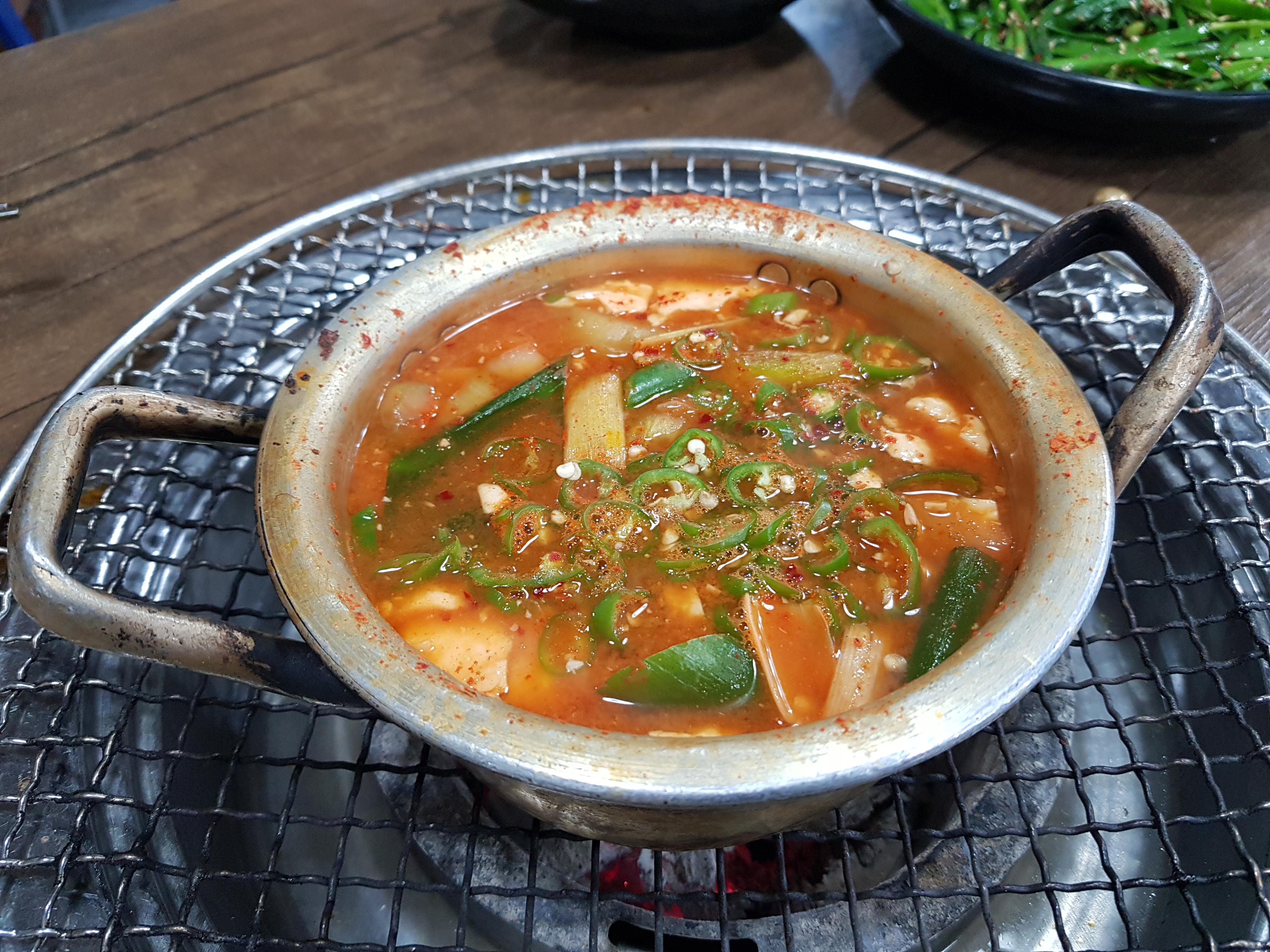 숯위에 있는 된장찌개 보이시나요?
