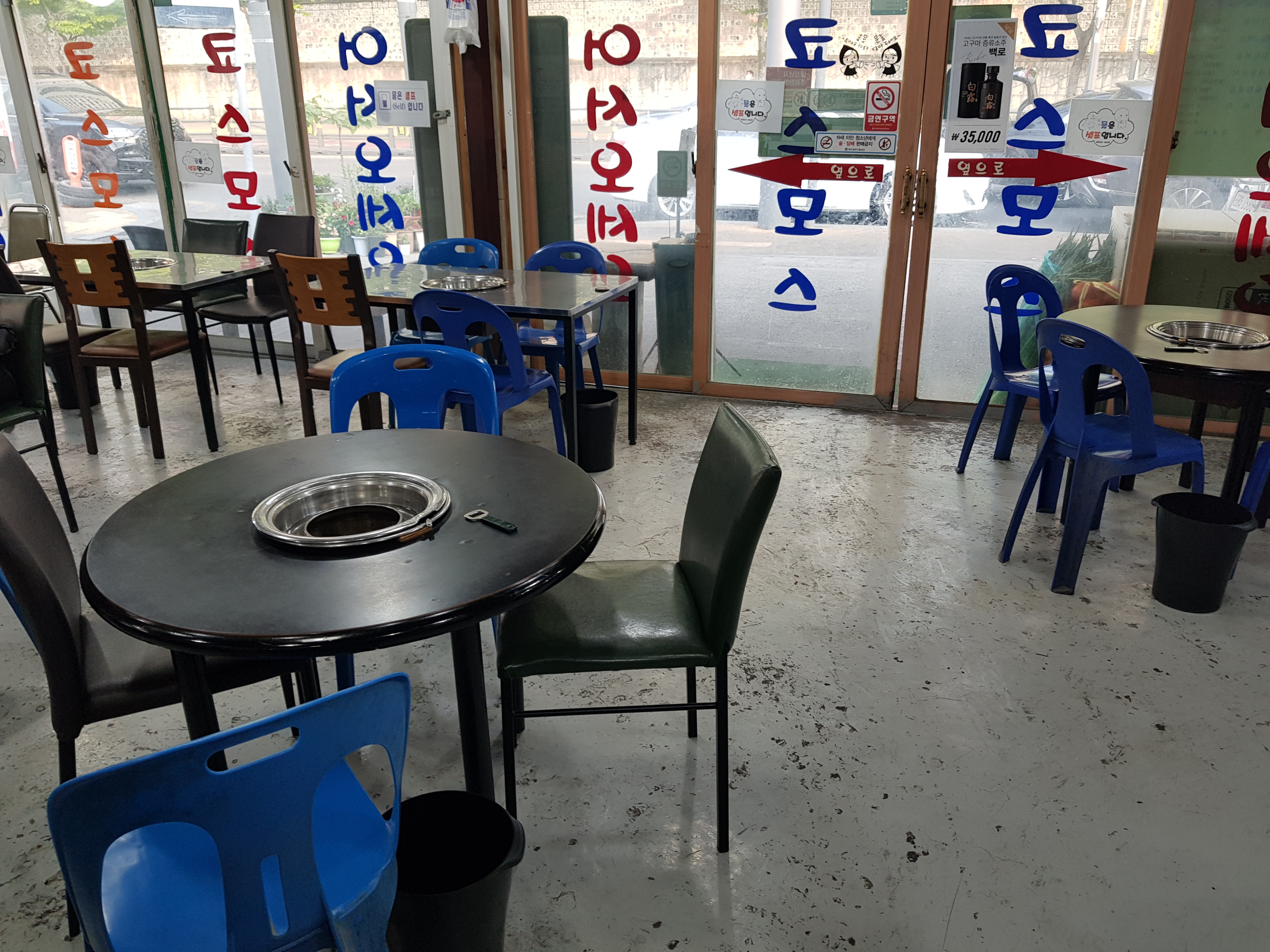 이렇게 둥근테이블과 사각테이블들로 구성되어 있구요~
