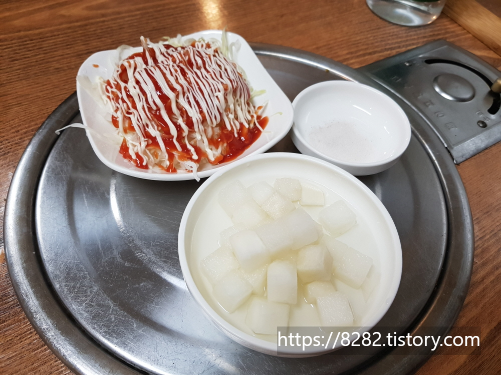옛날 통닭집답게 야채샐러드가 나오구요~